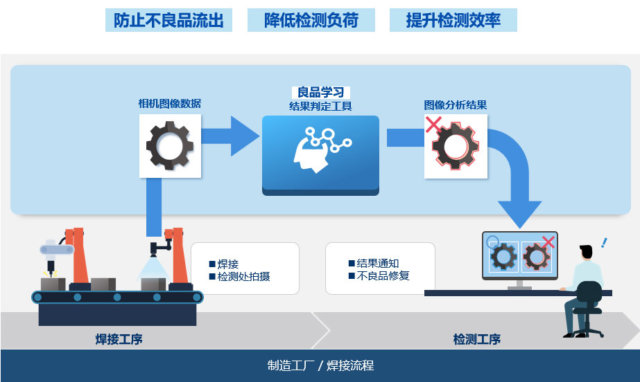 用AI實(shí)時(shí)檢測焊接工序中的不良品,并通知檢測人員進(jìn)行修復