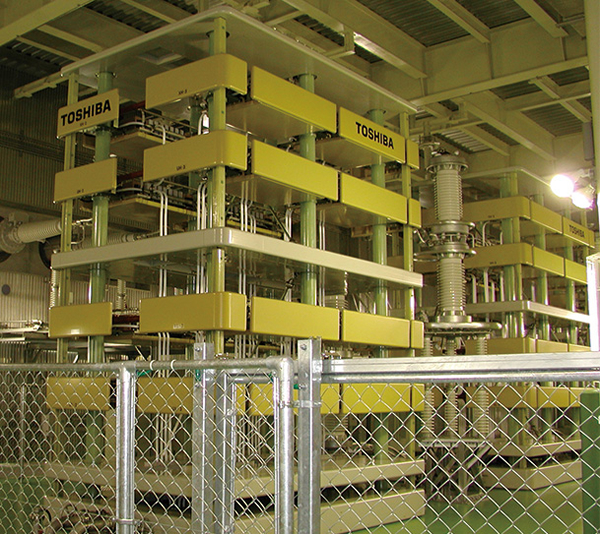 自20世紀50年代以來(lái),東芝一直在開(kāi)發(fā)直流輸電系統(HVDC)并提供支撐日本電力流通網(wǎng)絡(luò )的直流輸電/頻率變換系統、以及用于穩壓的靜止無(wú)功功率補償器,為電力的穩定供給做出了貢獻。