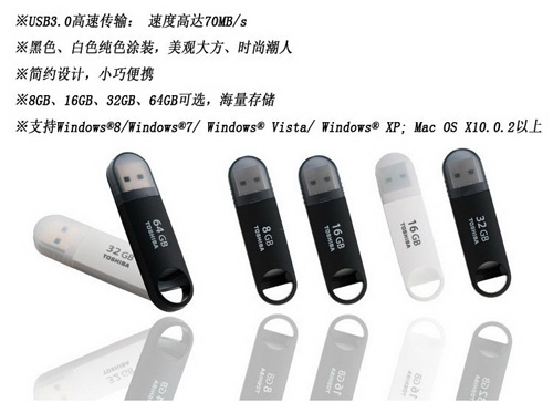 東芝Trans Memory-MX系列USB 3.0閃存盤(pán)已在中國大陸授權零售店開(kāi)售,容量規格為8GB至64GB,黑白兩色可選。全面支持Windows 8/ Windows 7/ Windows Vista/ Windows XP\Mac OS X10.0.2