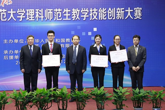 12月9日至12日,由中華人民共和國教育部、東芝(中國)有限公司共同舉辦的“第八屆東芝杯?中國師范大學(xué)理科師范生教學(xué)技能創(chuàng )新大賽”(以下簡(jiǎn)稱(chēng)大賽)決賽,在江蘇師范大學(xué)舉行。教育部領(lǐng)導、東芝公司及江蘇師范大學(xué)領(lǐng)導均出席了決賽頒獎現場(chǎng)。