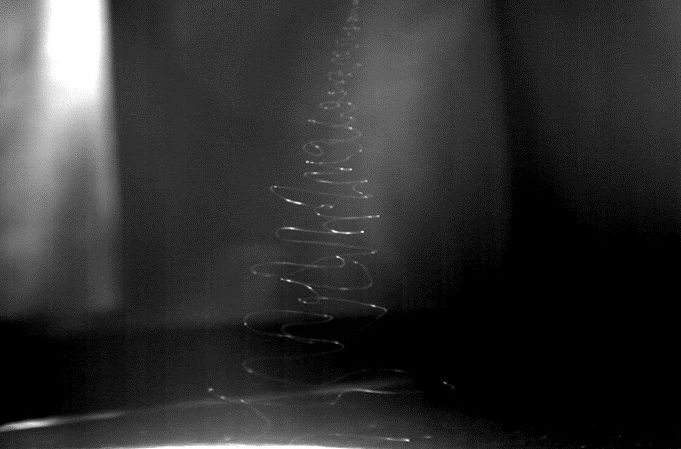 根據施加電壓的大小、噴嘴和涂敷的基底材料之間的微妙距離、材料和基底材料的類(lèi)型等不同因素,這20cm中的過(guò)程也各有不同。我們的關(guān)注點(diǎn)之一就是飛濺的角度。相對于涂敷的材料,越接近著(zhù)陸,飛濺中的溶液漩渦的角度越?。ㄖ饾u減少),因此我們可將角度的變化用數值表示。